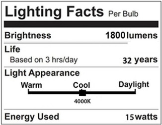 The 15 watt 1800 lumen LED 4’ Glass tubes offer exceptional performance for precision lighting applications. These 4’ linear LED tubes are high quality replacements for fluorescent lamps. They are UL listed for use in damp locations and are RoHS complaint with no lead or mercury. Non-dimmable. Pre-owned. Suitable for installations from - 13°F to 113°F. DLC Certified*